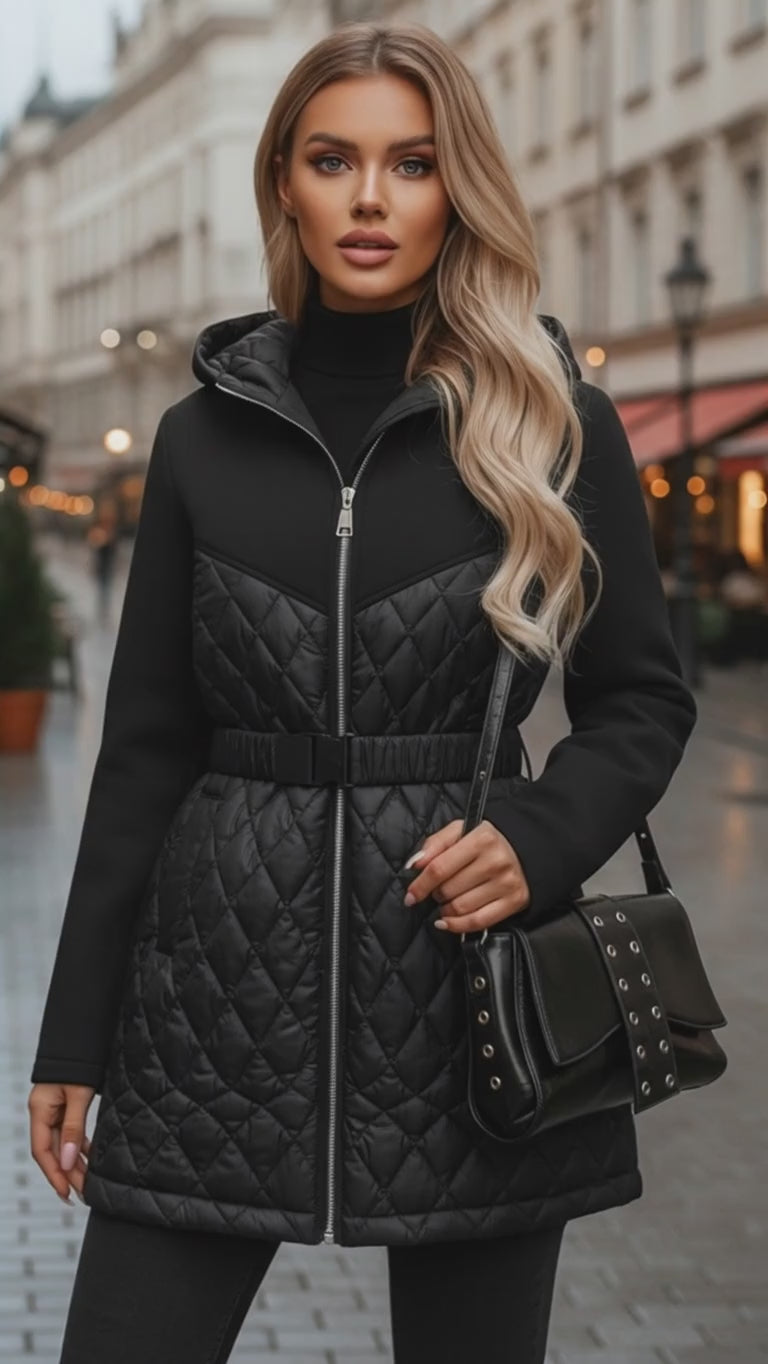 Ez a könnyű, steppelt tavaszi kiskabát tökéletes választás az átmeneti időszakra. Vékony reggelnek kényelmes viselet, kellemesen melegen tart a hűvösebben és estéken. A praktikus kapucni extra védelmet nyújt szeles időben, a modern csattos záródás pedig stílusos megjelenést biztosít.