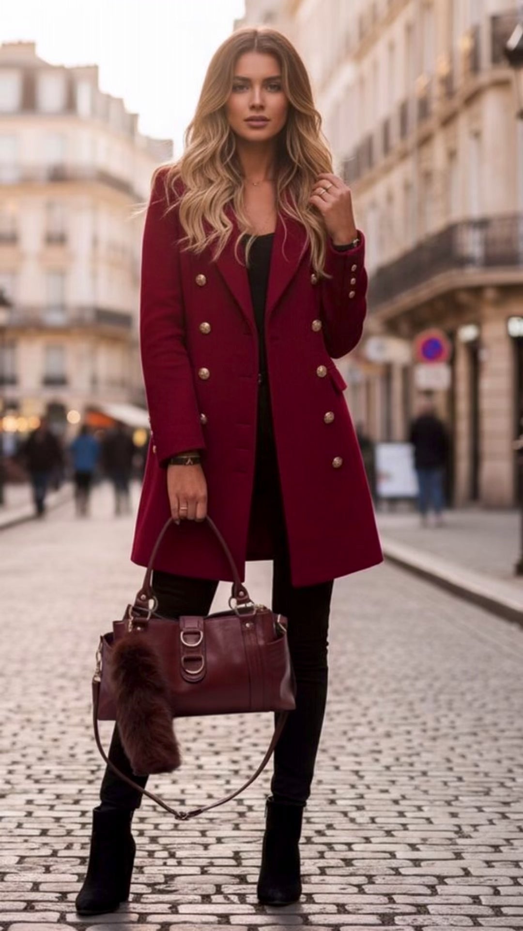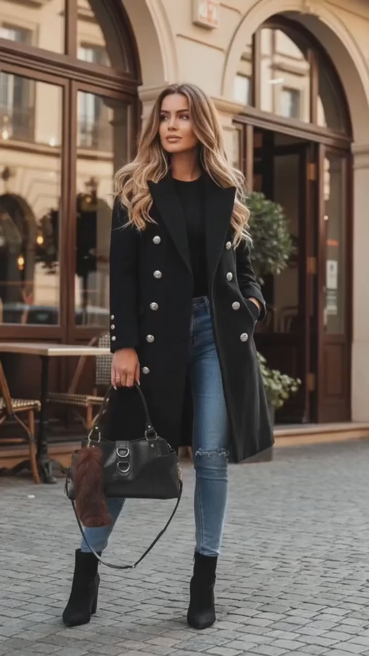 Karcsúsított ,nem bélelt szövet kabát arany gombokkal – ünnepi elegancia a hétköznapokban.